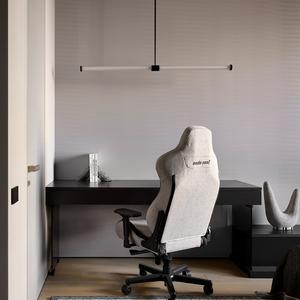 Вторая — более камерная зона в графитовой гамме: тёмный стол с интегрированными тумбами, контрастная декоративная стена и эргономичное кресло. Решение под того, кто проводит за экраном много часов.
